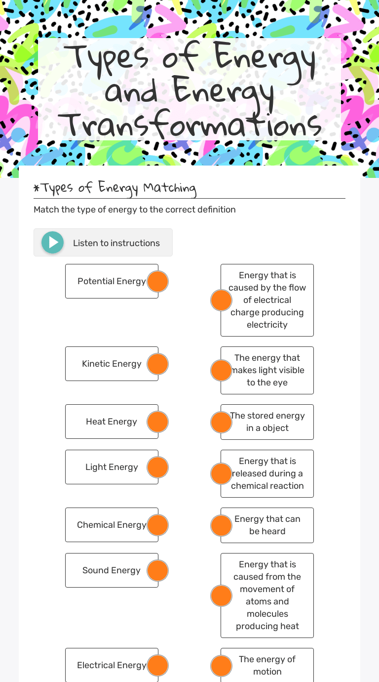 Acirc Euro Oelig Introduction To Energy Acirc Euro Zwnj Worksheet Web View Acirc Euro Oelig Introduction To Energy Acirc Euro Zwnj Worksheet Last Modified By Delaware City Schools Docx Document from demo.fdocuments.in T evaporation occurs when liquid water changes into a gas. Solar energy from the sun is converted into chemical energy in the form of glucose. Carbon dioxide and water in the presence of sunlight is converted into glucose and oxygen. Energy is stored in the molecules's chemical bonds and can be used quickly and easily by cells. T evaporation is a physical change. 6 co2 + 6 h20 c6h1206 + 6 o2. True (t) or false (f) 1. Other examples include metal rusting, wood burning, batteries producing electricity, and photosynthesis in plants.
